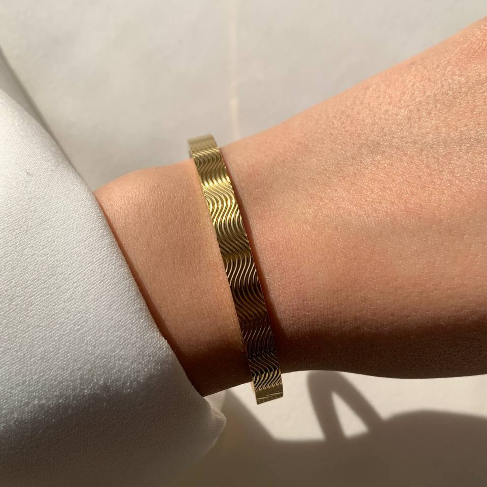 Beleef de stijlgolf met de Motion Bangle . De vloeiende, elegante rondingen zorgen voor een vleugje moeiteloze verfijning. Klaar om je look te laten schitteren?