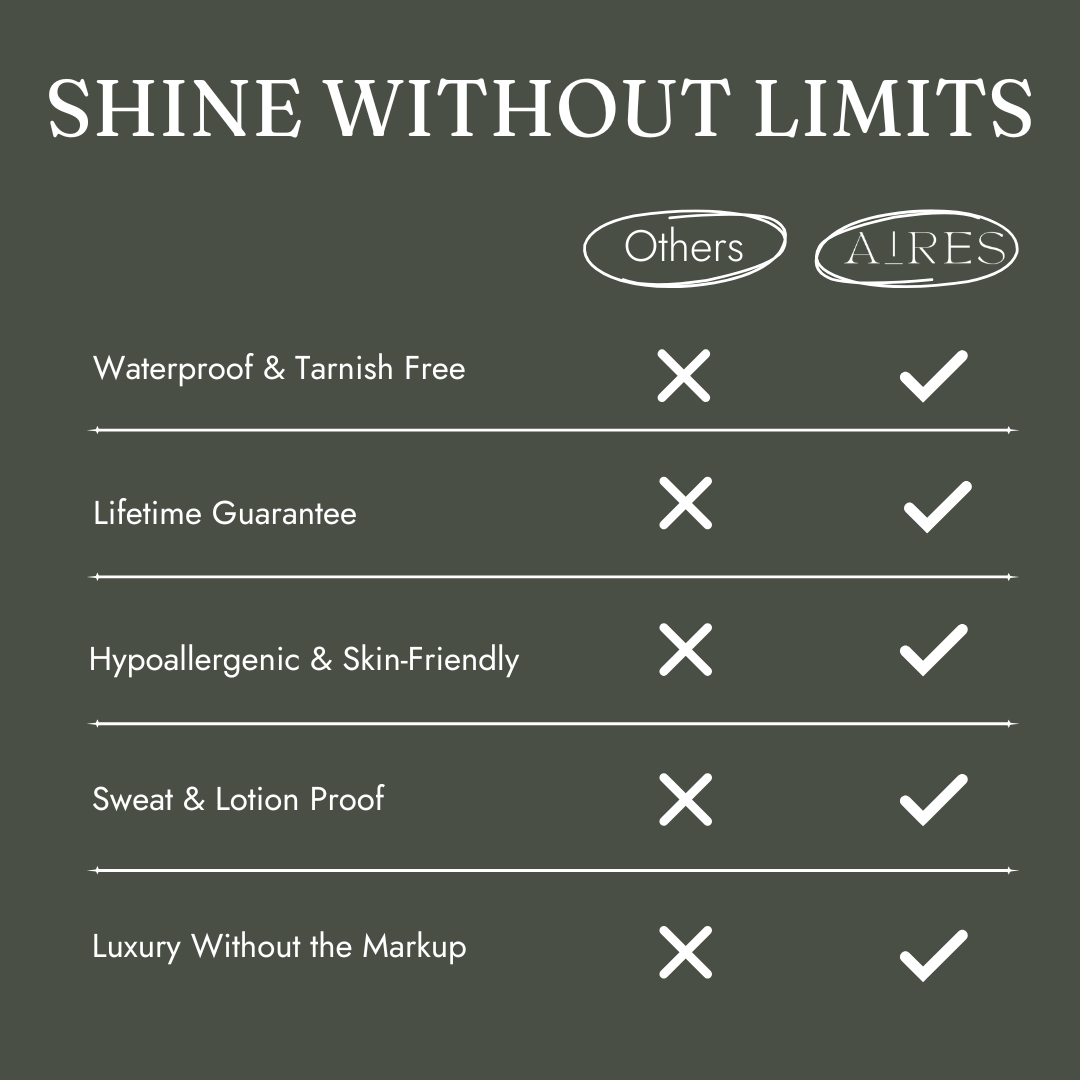 Bij Aires streven we ernaar om u zorgeloze, luxueuze sieraden te bieden voor elk avontuur. Bedankt dat u deel uitmaakt van onze community.