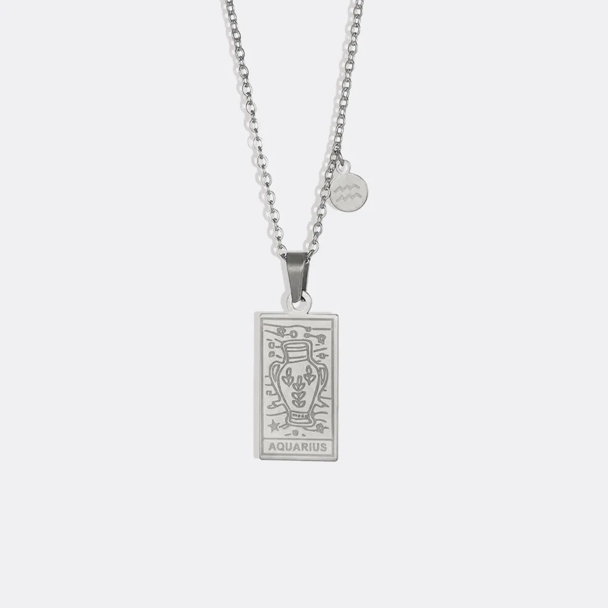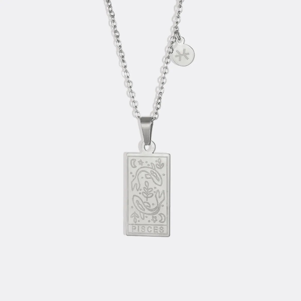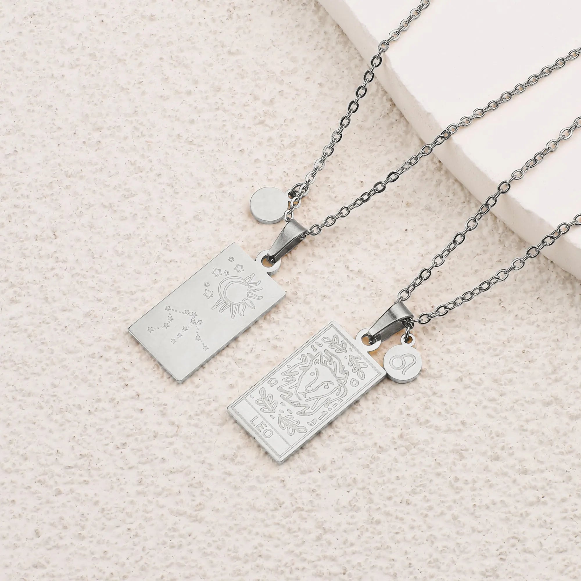 De Soluna Pendant Necklace is een veelzijdig en betekenisvol accessoire, perfect voor astrologieliefhebbers. Met een dubbelzijdige rechthoekige hanger kun je je sterrenbeeld of het bijbehorende sterrenbeeld weergeven. Een subtiel label met een sterrenbeeldsymbool voegt een charmante, persoonlijke touch toe.
