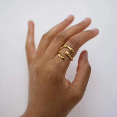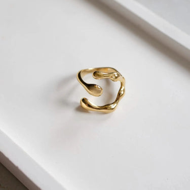 Omarm moeiteloze elegantie met de Velora Ring . Dit verstelbare sieraad is gemaakt van 18-karaats verguld roestvrij staal en is zowel waterdicht als hypoallergeen – perfect voor dagelijks gebruik. Het strakke design voegt een vleugje verfijning toe aan elke outfit, of je nu netjes gekleed bent of casual.
