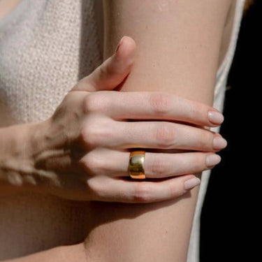 Verfijn je dagelijkse stijl met de Yvonne Gold Ring – een gedurfd maar verfijnd sieraad, gemaakt van 10 mm licht gehamerd 14-karaats geelgoud verguld sterling zilver. De textuur geeft een vleugje karakter, waardoor hij ideaal is om te combineren of solo te dragen.